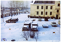 Your mystery pic of Coleman Kaserne at Gelnhausen Germany was probably taken either before 1953 or after 1956. My building was the one directly behind the post chapel. I do not recall there ever being a football game in the 35 months that I was stationed there and I don't remember the score board either. One of Mr. Thompson's pix of the post taken in May 1950 shows the football field as being close to the south perimeter fence (you can see the goal posts in the picture) and that area was the truck park and well graveled when I arrived there in the summer of 1953.