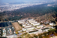 Same profile of building you see in the current pictures, 3 vertical pillars by front entrance. The COL quarters at that end of post appear to have the same profile, windows and garage. Most distinctive are the high tension power lines that run just outside the north end of PHV adjacent to A5. The trees have grown much bigger; the open fields were used for soccer practice.