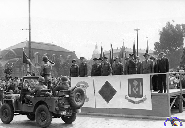 On June 9, with 4th division troops still being assembled at Camp Y-79, 3,700 troops of the 4th Inf Div participated in a German-American friendship parade in Mannheim. In a 40 minute march through downtown Mannheim, the soldiers passed in a nine-man front the reviewing stand before Lt Gen Manton S. Eddy, Lt Gen Clarence R. Huebner, Maj Gen Harlan N. Hartness as well as city officials and HICOG digitaries. Also included in the parade was the 4th Division band playing martial music.