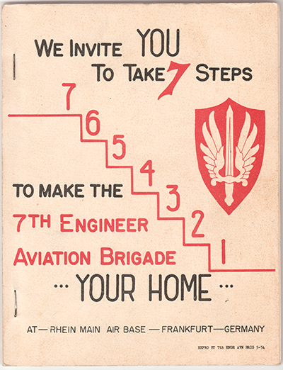 In 1952, the 7th Engineer Aviation Brigade was alerted for overseas movement. The brigade arrived at Rhein-Main Air Base near Frankfurt in September 1952. On Sept 23, 1952, the 7th Engr Avn Bde was assigned to USAFE Headquarters. CO of the 7th Engr Avn Bde is Col Benjamin C. Fowlkes, Jr.