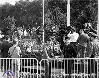 My main purpose that day was to set up the audio to the SHAPE 35mm film cameras, the two Wall cameras in the center of the press photo, with large white tape on the magazine canisters. After that, I also carried a Speed Graphic to 'get any shots I could.'
