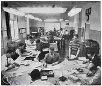 News room: John Sharnik, day news editor; Joseph Rabinovich; Eugene Levin; Jonathan V. Levin; Victor B. Sanford; Norbert Ehrenfreund and Gustav R. Wieman, copy clerk.
