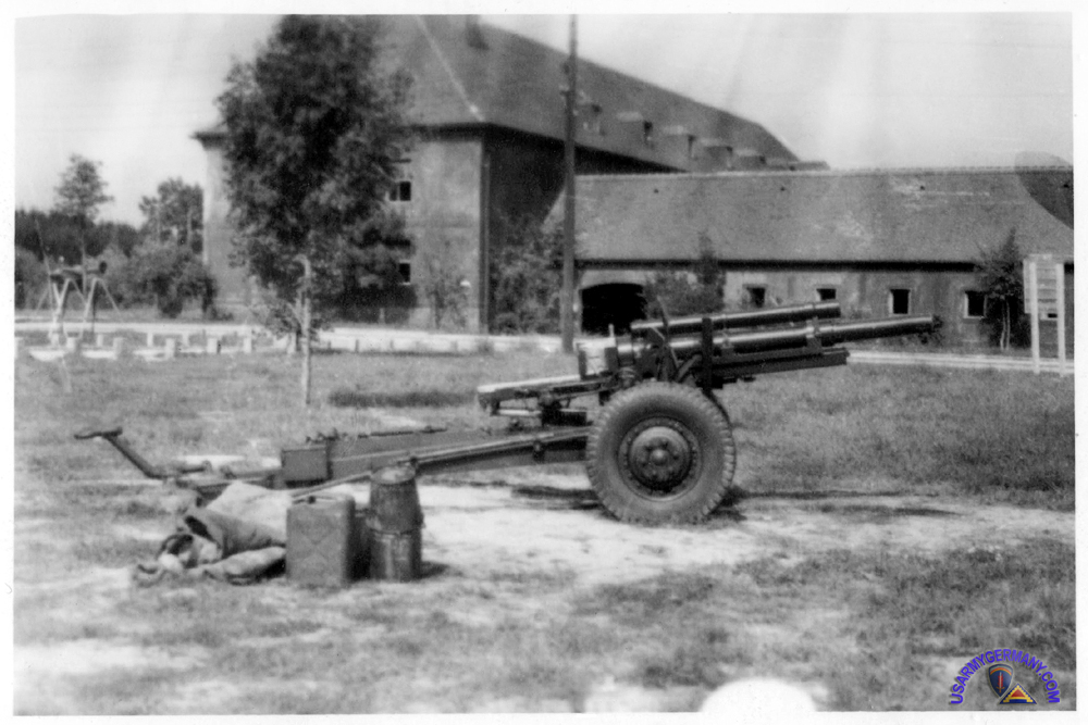 A salute cannon in front of HQ barracks. Building (#7) across the street is part of the EM barracks.