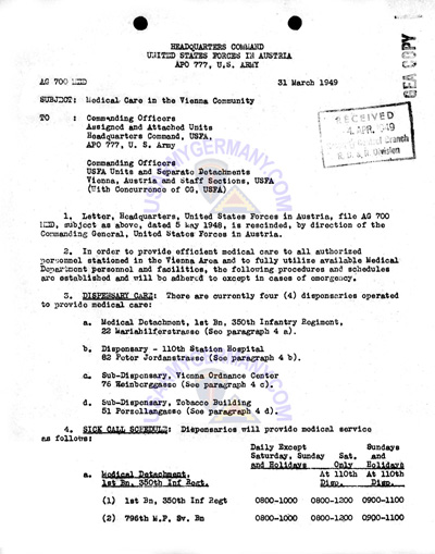 | 110th Station Hospital -- US Army Hospital, Vienna |